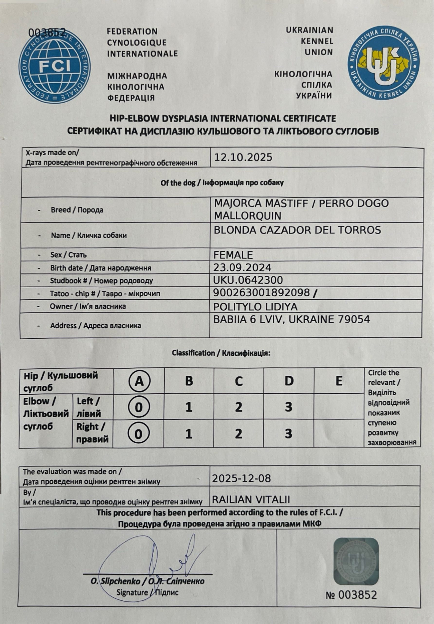 Date of birth: 23.09.2024 (HD-A, ED-О)